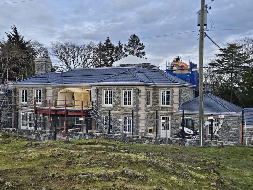Oak Bay Stone Mansion was a new-build family home executed at an exceptional scale. The project was entirely clad in local sandstone and Indiana limestone, with extensive carving, hardscaping, flatwork, and fireplaces integrated throughout. With approximately 500 tonnes of stone on the building and a high level of custom detailing, the project demanded technical precision, disciplined sequencing, and deep respect for material.